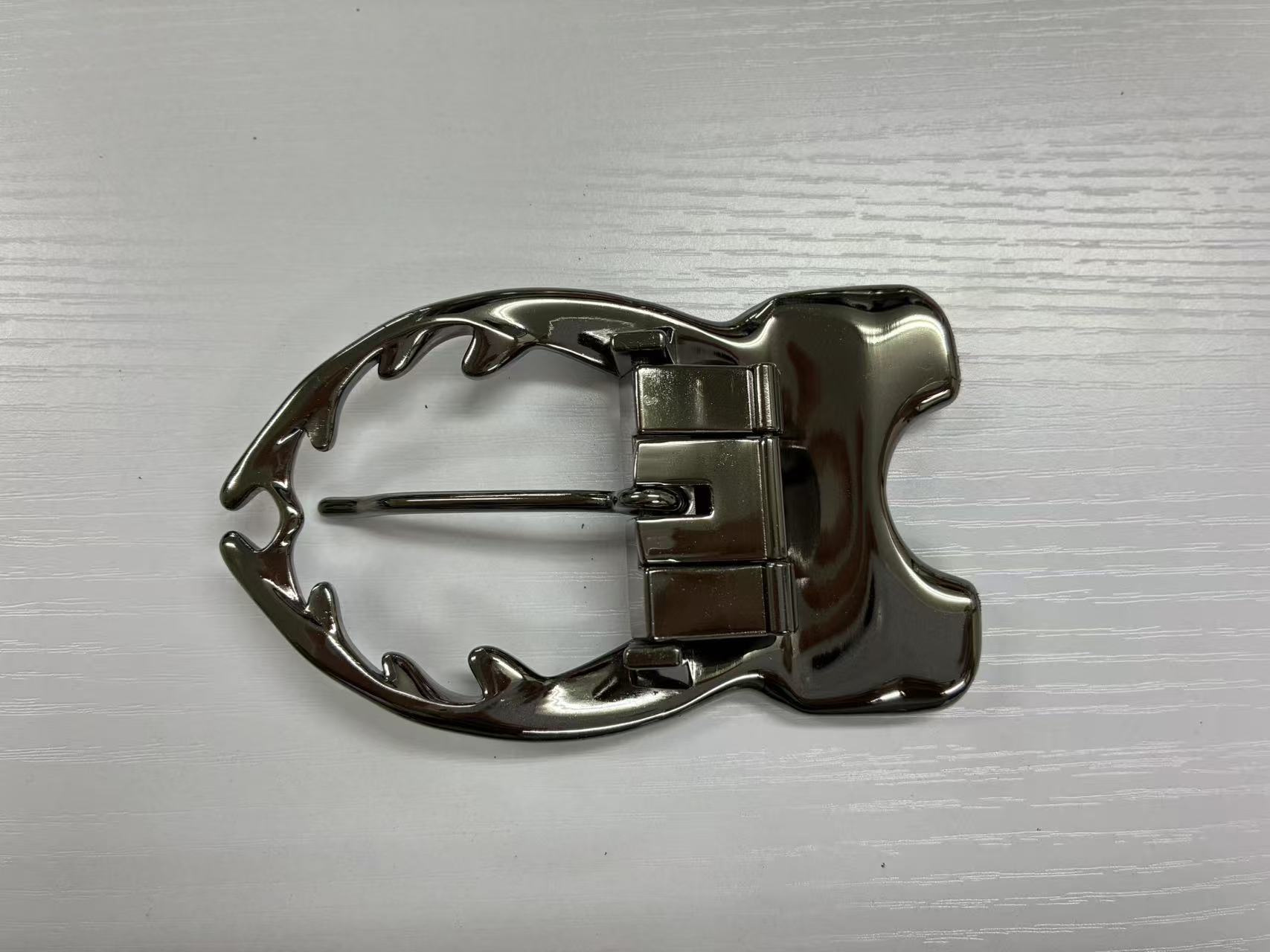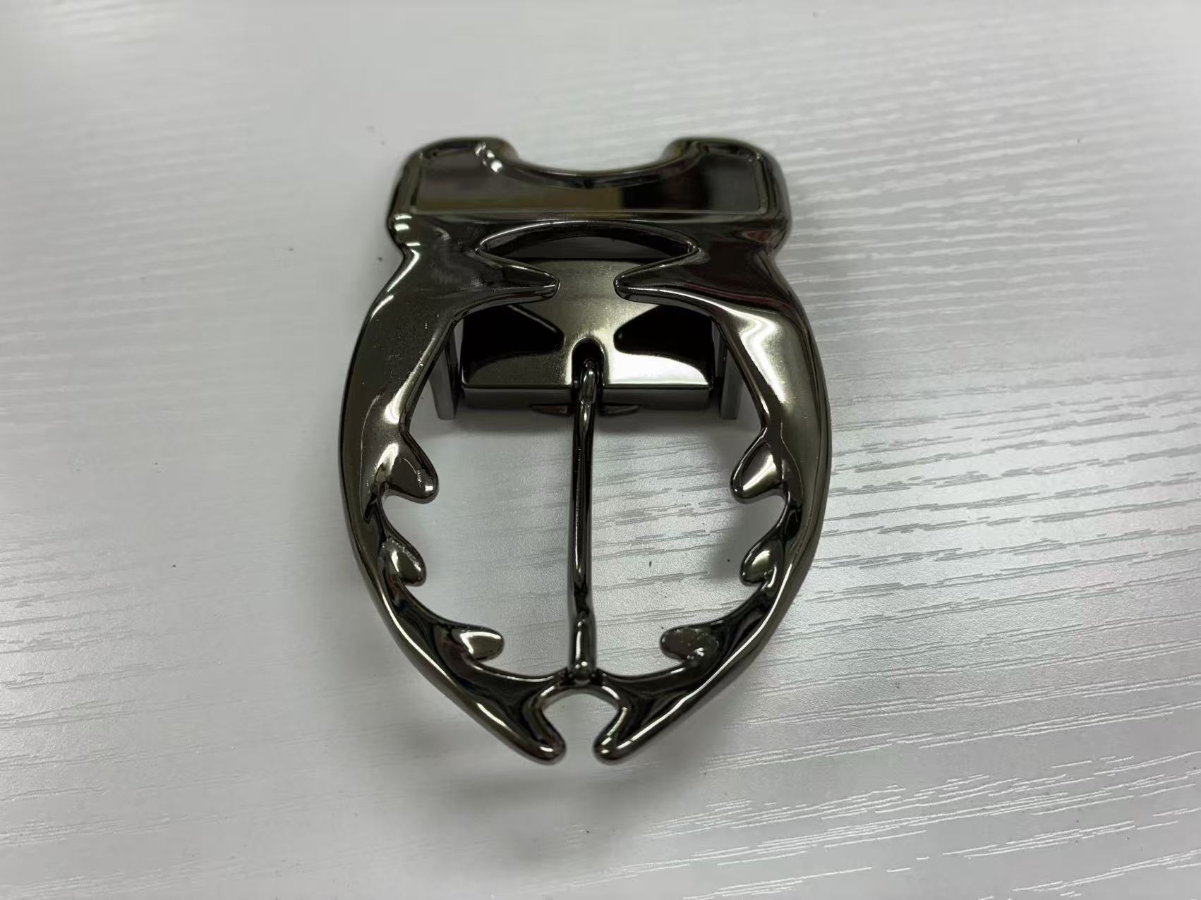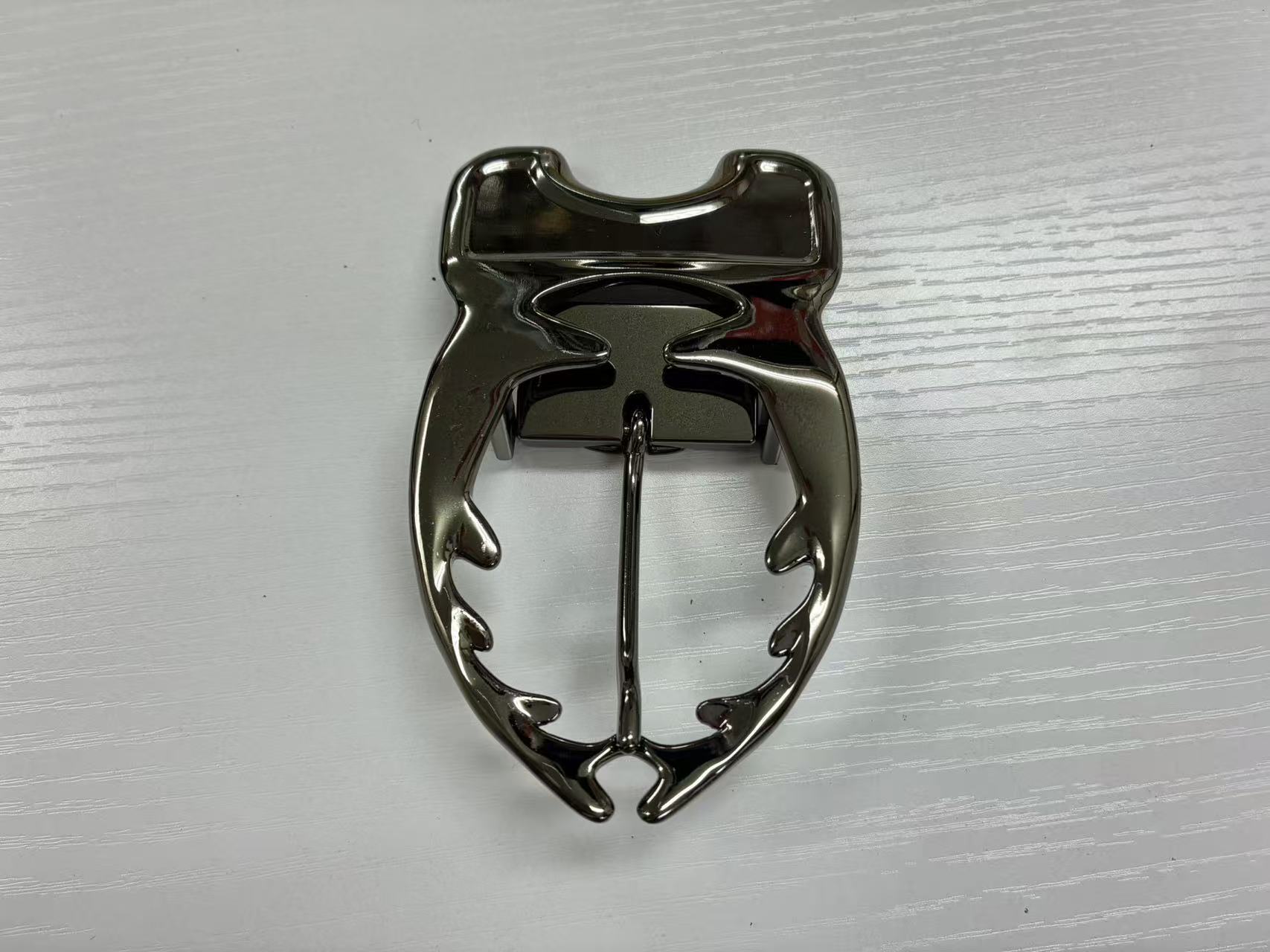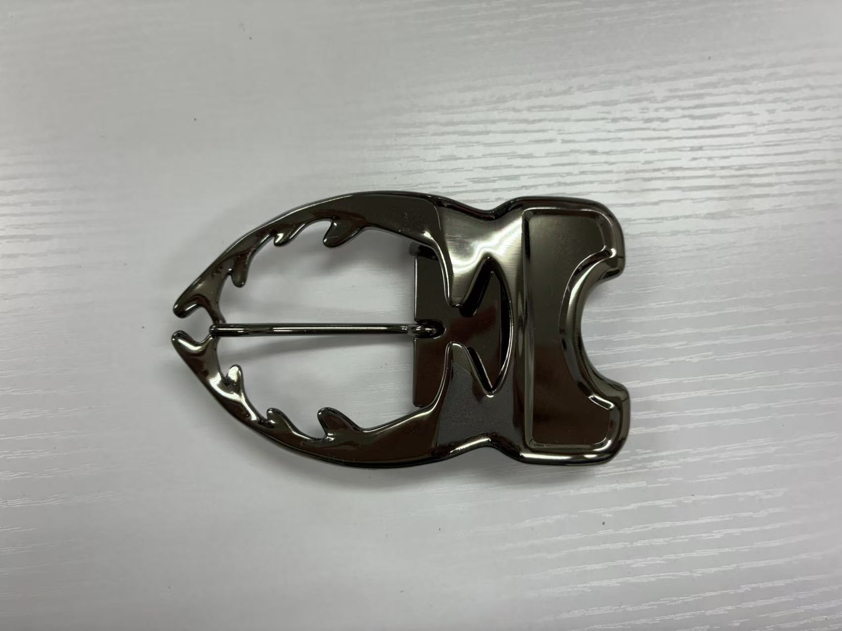 深い艶を放つ黒ニッケルを纏った、ミヤマクワガタのバックル。